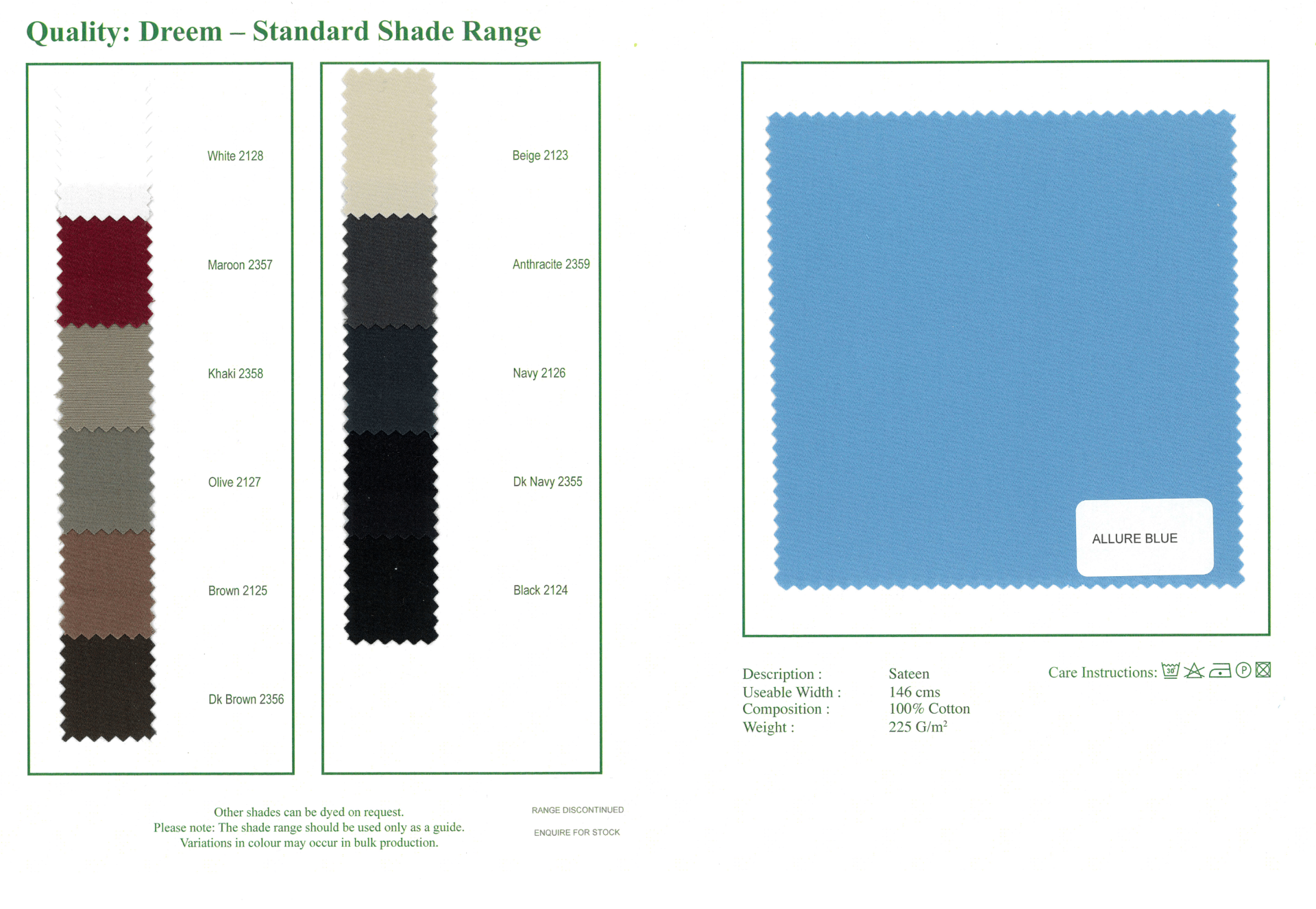 If you require a wider range of fabrics or guidance with your selection please email your enquiry to sales@brisbanemoss.co.uk or contact our sales team on +44(0)1706 815121. Shade cards or swatches are normally despatched within 48 hours. Shade cards or colour swatches sent to UK customers will be posted through Royal Mail. Shade cards and colour swatches despatched outside the UK will be via Courier however we can only despatch to EU customers on receipt of an EORI or VAT number.
