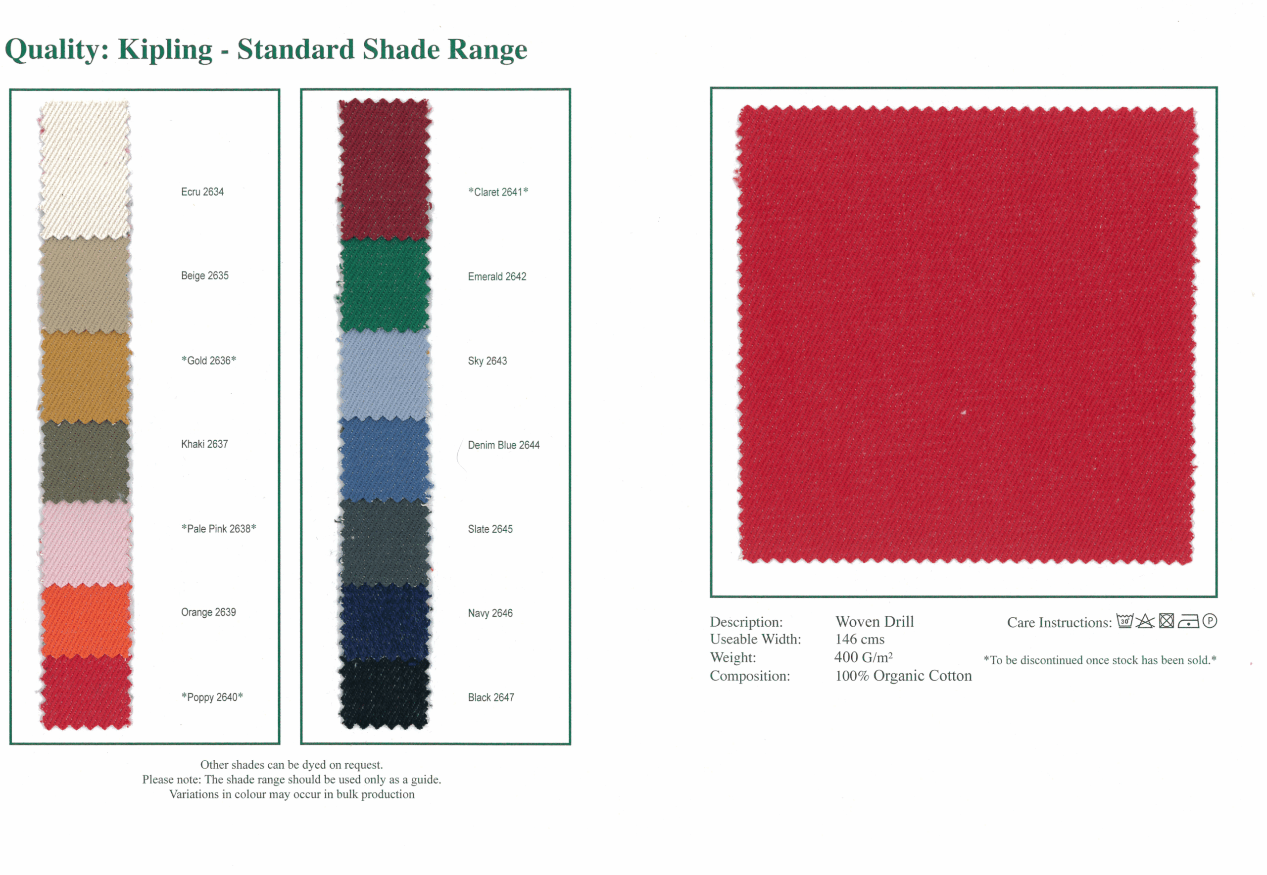 Kipling Shade Card
