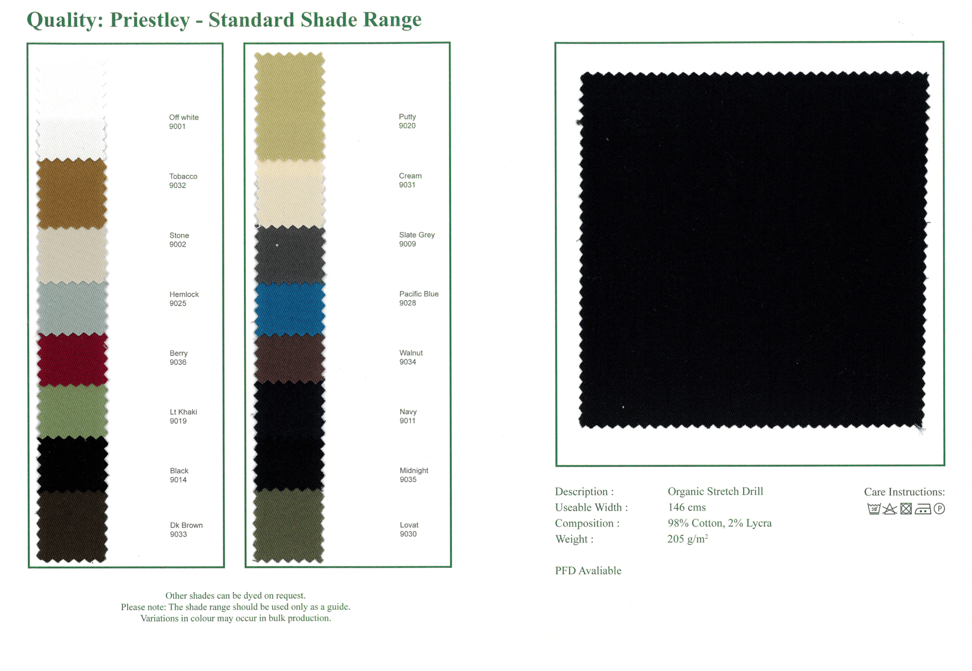 If you require a wider range of fabrics or guidance with your selection please email your enquiry to sales@brisbanemoss.co.uk or contact our sales team on +44(0)1706 815121. Shade cards or swatches are normally despatched within 48 hours. Shade cards or colour swatches sent to UK customers will be posted through Royal Mail. Shade cards and colour swatches despatched outside the UK will be via Courier however we can only despatch to EU customers on receipt of an EORI or VAT number.